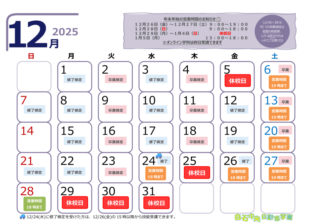 ※検定申込・教習期限等にご注意下さい。