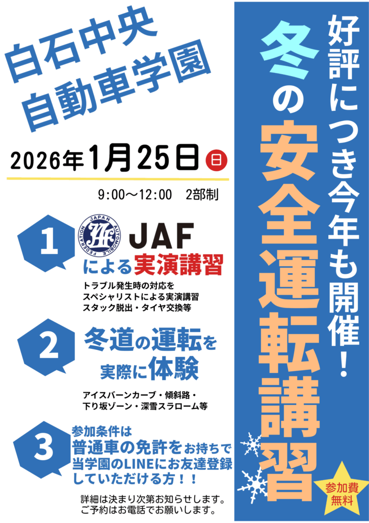 ☆冬の安全運転講習会のお知らせ☆ - 2025年12月15日
