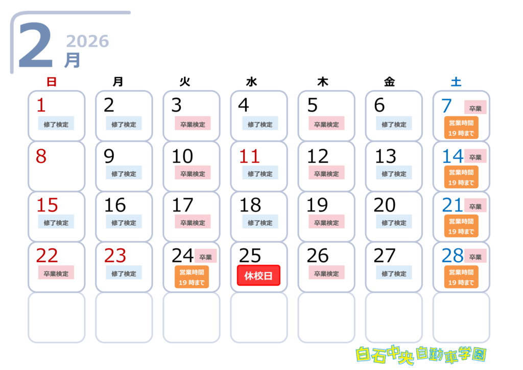 ※検定申込・教習期限等にご注意下さい。