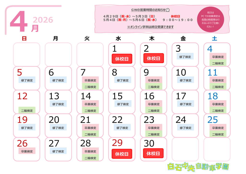 ※検定申込・教習期限等にご注意下さい。